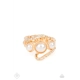 A golden ribbon of white rhinestones whirls around and behind a single band of three bubbly white pearls, coalescing into a timeless twinkle atop the finger. Features a dainty stretchy band for a flexible fit.