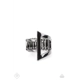 Featuring a high sheen finish, flared gunmetal bars create a bold asymmetrical triangle atop the finger. Two small gunmetal bars wrap around the side for an edgy modern finish. Features a stretchy band for a flexible fit.