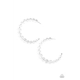 Gradually increasing in size at the center, a glassy collection of white beads are threaded along an oversized hoop for a bubbly effect. Earring attaches to a standard post fitting. Hoop measure approximately 2 1/2" in diameter.