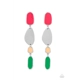 Painted in shiny Raspberry Sorbet, Desert Mist, and Mint finishes, a collection of asymmetrical frames link with a glistening silver frame, creating an abstract lure. Earring attaches to a standard post fitting.