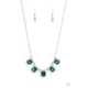 Bordered in glassy white rhinestones, verdant green emerald style rhinestone encrusted frames gorgeously link below the collar for a timeless fashion. Features an adjustable clasp closure.