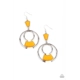 Bold silver circles create an eye-catching frame for a vibrant Marigold faceted bead. The trendy pendant sways from a Marigold triangular bead anchor for an embellished finish. Earring attaches to a standard fishhook fitting.