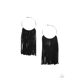 A curtain of black cords stream from the center of a dainty silver hoop, creating a glamorous fringe. Earring attaches to a standard post fitting. Hoop measures approximately 1 3/4" in diameter.