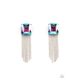 Featuring a stellar UV shimmer, an oversized radiant cut gem is pressed into a pronged silver fitting that gives way to a tapered curtain of silver chains for an out-of-this-world finish. Earring attaches to a standard post fitting.