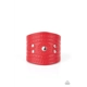 Dotted in shiny silver studs, a triangular piece of red leather is stamped in indigenous inspired patterns for an urban flair. Features an adjustable snap closure.