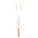 A set of concentric gold circles connected by flat discs swings from a lengthened gold chain. A soft fringe sways from the bottom ring for an elemental approach. Features an adjustable clasp closure.