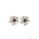 Airy brass petals bloom from a studded brass center, creating a rustic flower. Earring attaches to a standard post fitting.