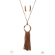 A collection of earthy multicolored stone beads are threaded around a wire hoop that is fastened at the end of a lengthened brown suede cord. The earthy stones make way for a foxy fringe of brown suede that sways from the bottom of the hoop, resulting in a rustic down-to-earth vibe. Features an adjustable clasp closure.