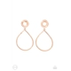 A milky white bead is pressed into the center of a textured shiny copper fitting that attaches to an oversized textured shiny copper teardrop, creating an ethereal lure. Earring attaches to a standard clip-on earring.