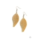 An airy stenciled brass leaf frame delicately overlaps with a brown metal leaf, creating a simply seasonal lure. Earring attaches to a standard fishhook fitting.