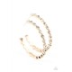 Encased in sleek gold fittings, a glamorous collection of glittery white rhinestones delicately coalesce into an oversized hoop for a sparkly statement. Earring attaches to a standard post fitting. Hoop measures approximately 2 1/2" in diameter.
