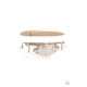 A white rhinestone silver centerpiece is studded in place by white rhinestone encrusted silver studs across the spliced center of a white leather band, creating a glittery urban look around the wrist. Features an adjustable snap closure.
