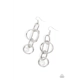 A collection of oval and round silver links, embellished with a faceted white bead suspended inside the bottom most round frame, coalesce into a flirty charm as it sways from the ear. Earring attaches to a standard fishhook fitting.
