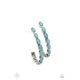 Small turquoise stones pressed into simple silver oval frames stack end to end as they fall from the ear and delicately curve into a J-shaped hoop for a refreshing finish. Earring attaches to a standard post fitting. Hoop measures approximately 1" in diameter.