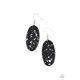 Speckled with white accents, a flat black stone is pressed into a sleek silver fitting for a colorfully seasonal look. Earring attaches to a standard fishhook fitting.