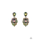 A stellar collection of marquise cut oil spill rhinestones nestle around an oversized teardrop oil spill rhinestone, creating a dramatically stellar display at the bottom of a matching oil spill teardrop rhinestone. Earring attaches to a standard post fitting.