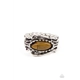 An earthy tiger's eye stone adorns the center of rippling silver folds that delicately gather into an abstract centerpiece atop the finger. Features a dainty stretchy band for a flexible fit.
