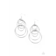 Varying in size, a shiny collection of mismatched silver hoops haphazardly connect into a dizzying lure. Earring attaches to a standard fishhook fitting.