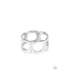 Brushed in a gritty finish, airy ovals have been cut out of curved silver frames. Threaded along stretchy bands around the wrist, the airy frames allow the skin to peek through their centers for a natural finish.