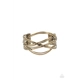 Brushed in an antiqued shimmer, hammered out pieces of flat brass bars decoratively weave into a curved cuff around the wrist for an intense industrial finish.