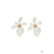 Featuring a golden studded center, asymmetrical white petals bloom into an abstract flower for a tropical inspired look. Earring attaches to a standard post fitting.