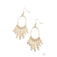 A tapered fringe of hammered gold oval frames swing from the bottom of a hammered oval hoop, creating a musical fringe. Earring attaches to a standard fishhook fitting.