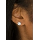 A sparkling white rhinestone is nestled inside a classic silver frame for a timeless look. Earring attaches to a standard post fitting.