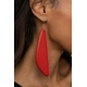 Painted in a fiery red finish, a flared wooden frame swings from the ear for a colorful summery look. Earring attaches to a standard fishhook fitting.