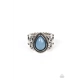 A refreshing Spring Lake teardrop bead is encased in a layered frame of smooth and rope-like texture. The magnificent statement piece sits atop a wide silver band adorned with swirls of filigree and studded motifs making a grand display atop the finger. Features a stretchy band for a flexible fit.