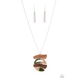 Featuring green acrylic accents, mismatched wooden frames delicately link into an abstract pendant at the bottom of a lengthened silver chain for an earthy fashion. Features an adjustable clasp closure.