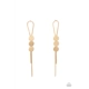 A gold loop of round snake chain is held in place by a trio of scratched gold discs, creating a trendy bolo-like lure. Earring attaches to a standard post fitting.