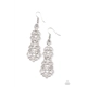 Sporadically dotted in glassy white rhinestones, studded silver filigree delicately whirls into a stacked lure for an elegant display. Earring attaches to a standard fishhook fitting.