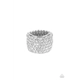A wide silver band, encrusted with glittering white rhinestones, encircles the finger for a dazzling, edgy centerpiece atop the finger. Features a stretchy band for a flexible fit.