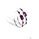 Encrusted in round and emerald-cut fuchsia and pink gems, an exaggerated oblong silver hoop curls around the ear, refracting light in a dramatic, knockout finish. Earring attaches to a standard post fitting. Hoop measures approximately 2" long.