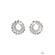 Shimmery strands of silver spin out from an airy center, creating an exaggerated firework-like display at the ear. An explosion of dainty white rhinestones lines the swirls and curves of the shimmery display leading the eye to the collection of colorfully reflective marquise-cut gems at its ends. Each colorfully reflective marquise-cut gem curls around the ear in a clock-like manner, creating additional eye-catching dimension. Earring attaches to a standard post fitting. Due to its prismatic palette, color may vary.