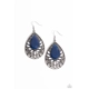 Marquise cut opalescent beads fan out from the bottom of an oversized Rhodonite teardrop bead atop a leafy silver backdrop, resulting in a whimsical floral frame. Earring attaches to a standard fishhook fitting.
