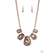 Delicately hammered in shimmer, a collection of antiqued copper teardrops link below the collar for an edgy statement-making look. Set in each hammered frame, faceted, peachy teardrop gems add a dramatic pop of color to the design. Features an adjustable clasp closure.