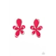 Overlapping a hot pink abstract acrylic flower, a silver outline in the same abstract floral shape glimmers atop the pop of color for a three-dimensional fashionable lure. Earring attaches to a standard post fitting.