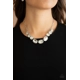 Featuring mismatched round, oval, and square cuts, a glittery row of dramatically oversized white rhinestones delicately link below the collar for an icy finish. Features an adjustable clasp closure.