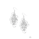 Shimmering rows of glassy white rhinestones and textured silver hoops cascade from a netted metallic backdrop, interlocking into a dizzyingly dazzling lure. Earring attaches to a standard fishhook fitting.
