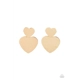 Delicately scratched in shimmer, a dainty gold heart frame delicately links with a larger gold heart frame for a flirtatiously layered look. Earring attaches to a standard post earring.