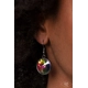 Three dramatically oversized oil spill rhinestones are nestled into three textured gunmetal fittings that are connected by oval gunmetal rings, creating a brilliant statement piece. Features an adjustable clasp closure. Due to its prismatic palette, color may vary.