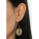 Three wide, curved brass bars, stamped in studded textured accents, connect to a brass chain across the collar. A substantial brass disc, divided down the center with texture, swings from the bottom resulting in an edgy modern finish. Features an adjustable clasp closure.