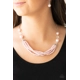 Oversized pink pearls and crystal-like beads give way to layers of beaded pearl strands below the collar for a timeless look. Features an adjustable clasp closure.