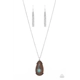A teardrop turquoise stone adorns a studded silver feather that embellishes an oversized wooden pendant at the bottom of an extended silver chain, resulting in a whimsically rustic pendant. Features an adjustable clasp closure.
