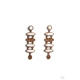 Round and oblong white stone adorned copper frames link with hammered copper accents, resulting in a rustically earthy lure. Earring attaches to a standard post fitting.