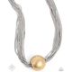 Strand after strand of sleek, silver snake chains cascade down the chest from silver cap fittings in edgy defiance. Infused along the unapologetic layers, a hollow oversized gold bead finishes the design off with additional metallic sheen. Features an adjustable clasp closure.