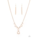 Irregular shaped rose gold rings connect to a rose gold chain as they make their way across the collar. Two rings dangle from the center for a stylish avant-garde fashion. Features an adjustable clasp closure.