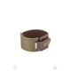 A curved brass panel, coated in antiqued texture, attaches to a wide brown leather band with brass snaps resulting in an edgy industrial element around the wrist. Features an adjustable snap closure.