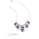 Shimmery silver plates slide along a skinny snake chain, with sleek metallic beads separating each one. Clusters of faceted gems are haphazardly staggered across the surface of each silver canvas, emitting a treasure trove of twinkle in rich shades of blue, purple, and pink. The size and intensity of each elevated grouping become more elaborate as the plates taper to a point at the center of the neckline, resulting in a kaleidoscopic collision of three-dimensional texture and sheen. Features an adjustable clasp closure.